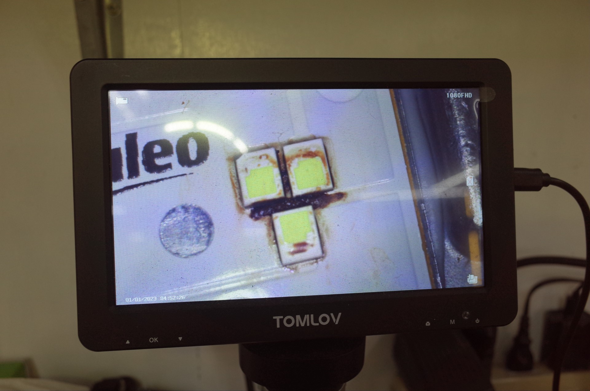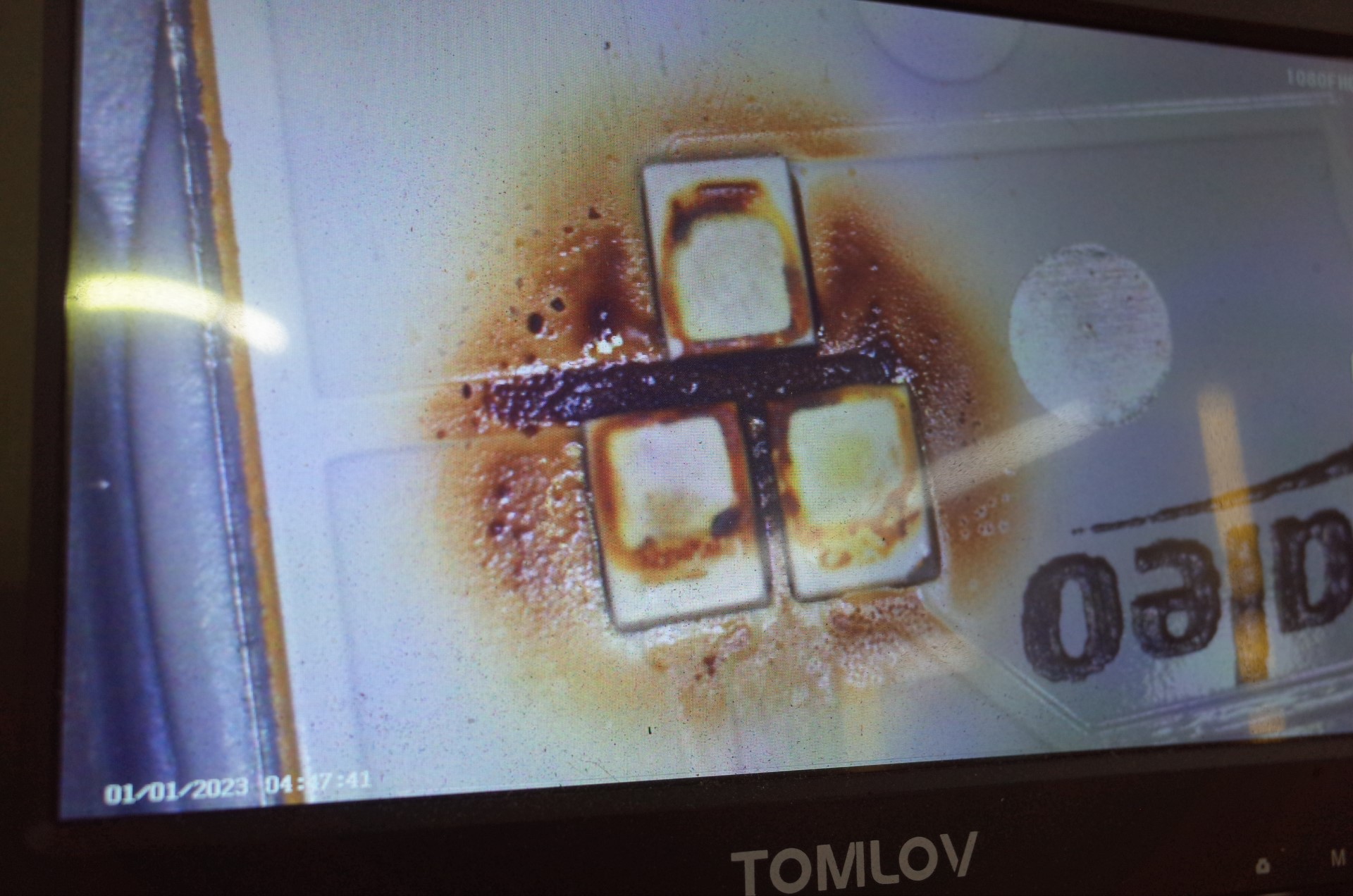 ピンぼけで映ってませんが導光チューブの先端が黒焦げです。