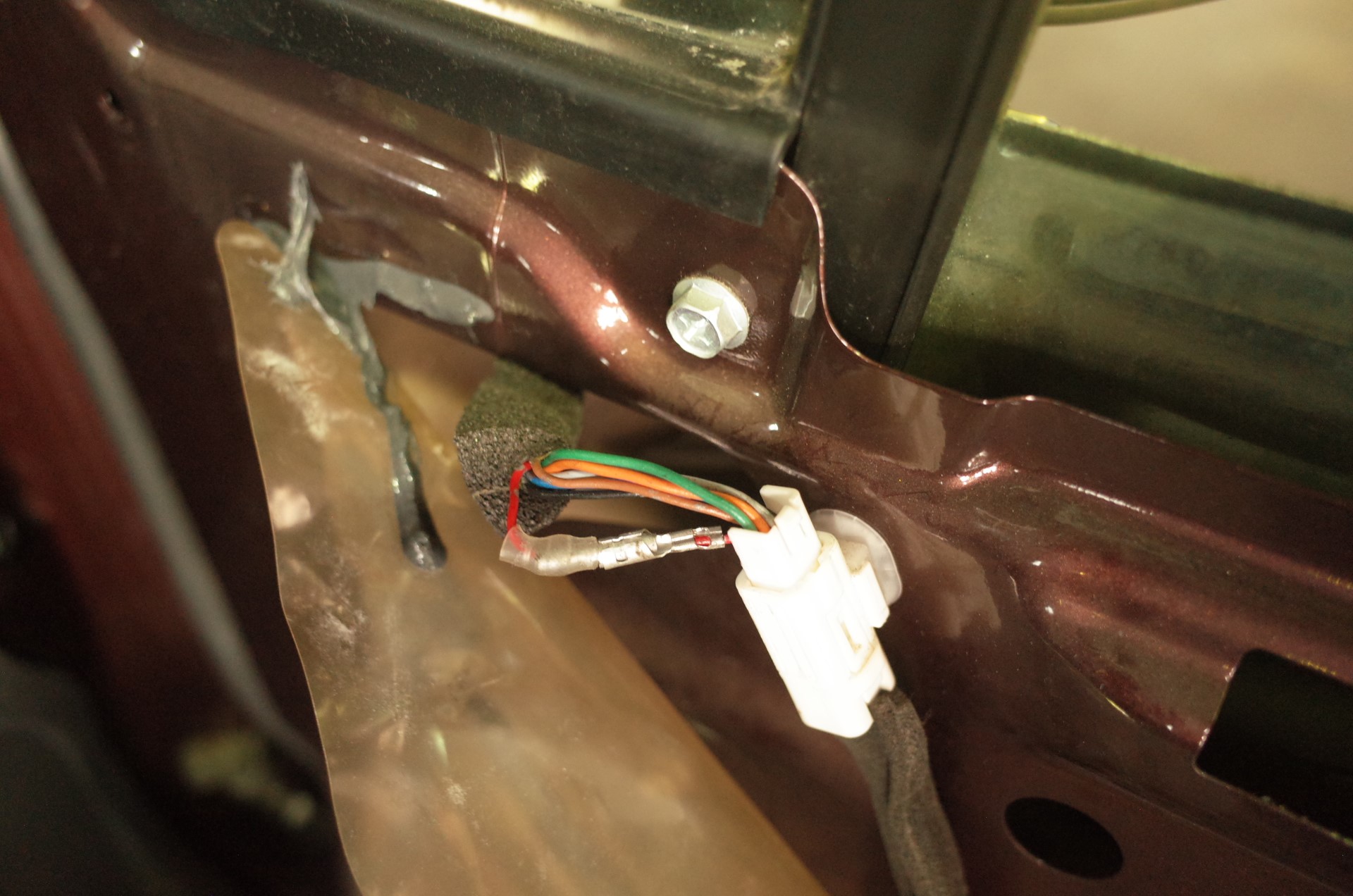 ミラーへの配線を確認したところなぜかギボシになっているところが・・・。