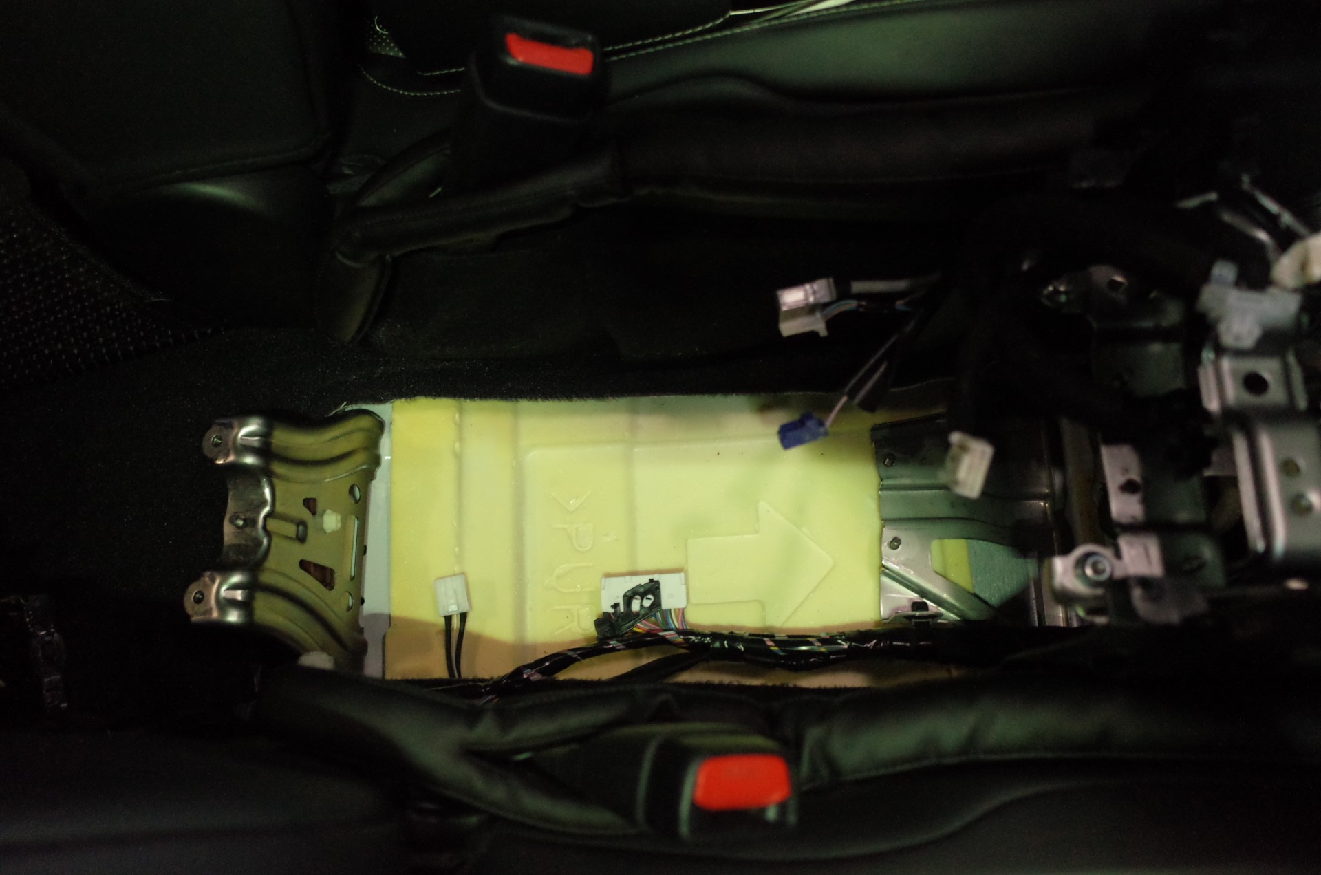 レクサスのマークレビンソンオーディオは外部アンプを搭載しています。今回はセンターコンソール下ということで