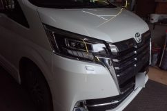 「移動するプライベートラウンジ」 を自称するトヨタのフラグシップワンボックス グラネースにてご来店いただきました。 迫力の車幅で日本車っぽくない感じが良いです。 ウィンカーをLEDにさせていただきました。