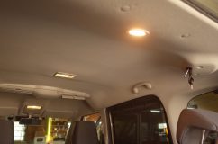 先日車内パネルの打ち換えでご来店いただいたお客様で 前回施工しなかったダウンライトの打ち換えを行いました。 またハイビームをハロゲンランプからLEDに交換しました。