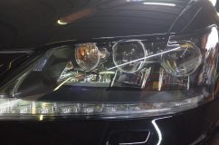 車種は忘れましたが郵送でのご依頼です。 右側走行用のヘッドライトを左走行に変更しました。 よく見ると純正ヘッドライトは上部に光が漏れています。 カットライン変更ついでに無駄な光を除去しました。 他にもプロジェクター自体を